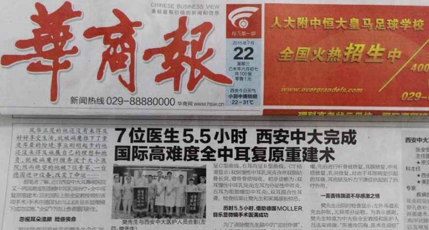 【华商报】7位医生5.5小时,西安中大完成高难度全中耳复原重建术