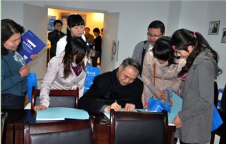 张全安教授现场授书《中耳炎专著》