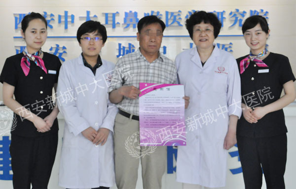 訾振兴今年60岁,家住铜川市,患有鼻病但治疗效果一直不太理想,鼻塞、流鼻涕的现象断断续续伴随了他10年,他也一直遭受着这样痛苦,去年10月份,他的右耳出现耳鸣,“嗡嗡的响”让他心烦意乱,恨不得拿把刀把自己的耳朵给剁掉。在当地医院治疗后,没有效果,他没办法,就一直得过且过。但今年5月中旬,他的右耳突然一下子什么也听不见了,这让他一下子慌了神,觉得自己要赶紧抓紧时间治疗好。通过向别人多方的打探,他知道西安新城中大耳鼻喉医院在治疗耳鼻喉疾病上很专业突出,于是6月份来到医院就诊。
