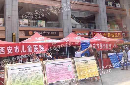 5月18日,由西安【华商报】牵头,联合、二附医院、西安中大耳鼻喉医院等近二十多家医院在雁塔区广场举行“天使在身边”大型公益义诊。