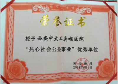 在接受记者采访时,西安新城中大耳鼻喉医院院长表示:荣获【热心社会公益事业】较好单位称号不仅是政府层面的一种认可,更是一种鞭策、一份责任。救死扶伤、帮助弱者、热心社会公益事业是我们作为一名医者必须要坚守的使命。