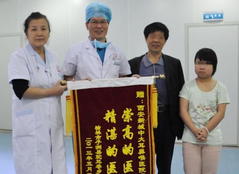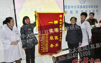 中耳炎患者献锦旗赞扬中大医生医技精湛