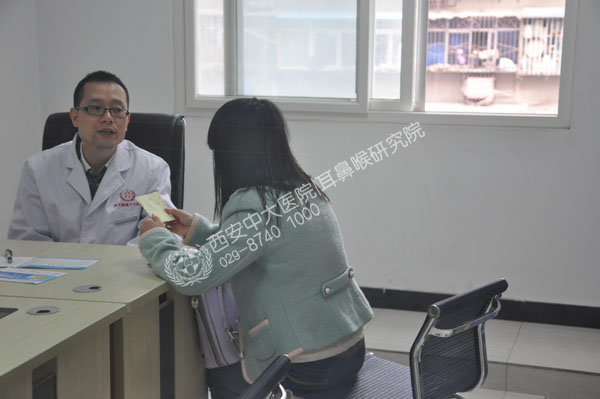 李小姐检查完耳朵,正在听冯亮医生分析病情