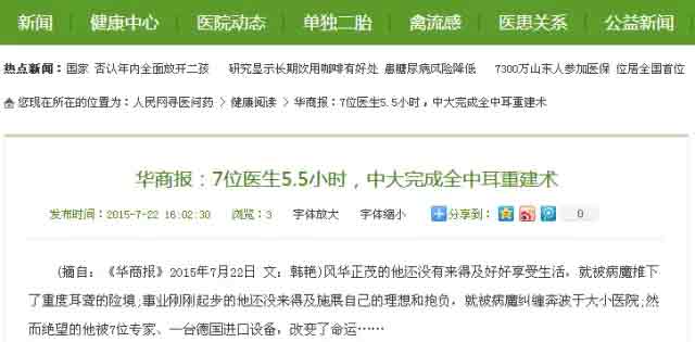 【华商报】7位医生5.5小时,西安中大完成高难度全中耳复原重建术