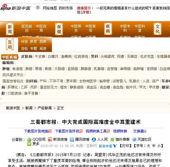 【新浪】:7位医生5.5小时,西安中大完成高难度全中耳复原重建术