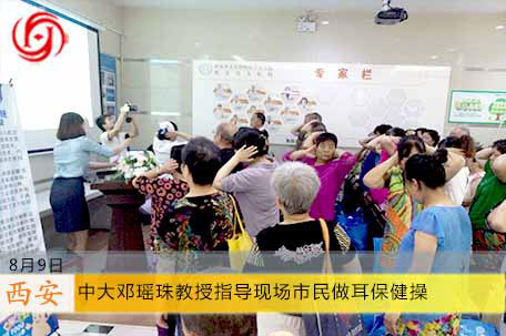 “经常按摩耳朵,对预防和缓解老年性耳聋、耳鸣很有帮助,今天我们一起来学习耳保健操”教授走到了听众席。带领大家做完耳保健操后,邓教授补充提醒:“耳朵内部比较脆弱,所以做耳部保健操动作要轻;耳朵不能受大分贝噪音干扰,我们要远离噪音;不要用尖锐的东西刺激耳朵”。