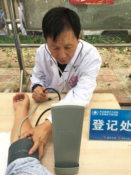 “大爷,您这耳朵里面都流脓了,经常耳朵痛?这是中耳炎的症状,已经比较严重了,建议您尽早去医院检查治疗,时间长了会影响您的正常生活。”经过初步检查确认,西安中大耳鼻喉医院医护人员对西安市新城区西电社区前来义诊的王大爷说道。