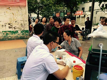 天作为陪同前来的周大妈说到:“天我就过来检查了一次,听说会在这儿诊三天,我赶忙通知了所有街坊邻居,难得时间长,让他们别错过机会。”