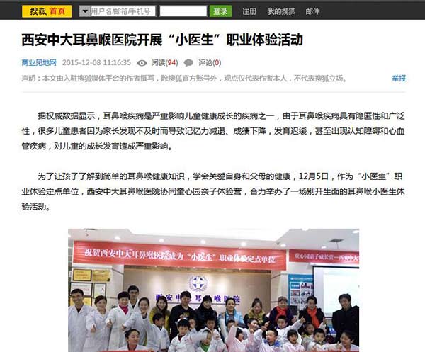 【搜狐网】西安中大耳鼻喉医院开展“小医生”职业体验活动