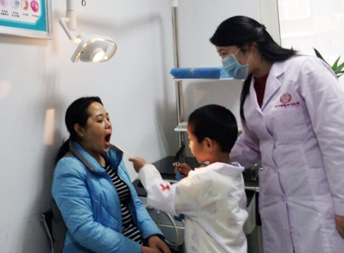 讲课结束后,所有儿童每5人分成一组,由西安中大耳鼻喉医院医护人员带领,分别进入各科室进行“小小医生”职业体验,各个诊室医助一对一教导小医生使用额镜、压舌板帮父母检查,让小朋友们过足医生瘾。