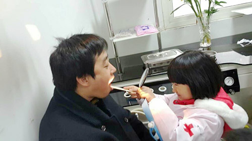 认真为父母检查的“小医生”: