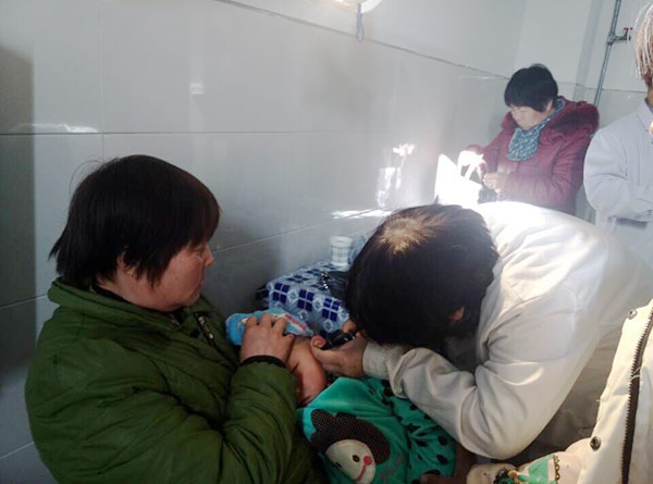 程元春教授正在检查小孩耳朵
