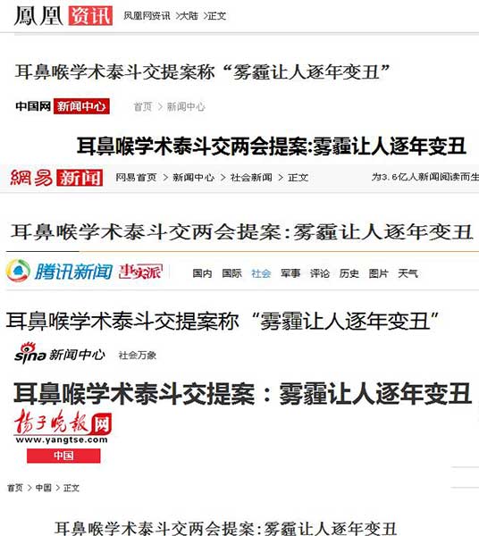 【凤凰新闻】耳鼻喉学术泰斗交两会提案:雾霾让人逐年变丑