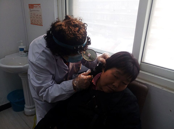 程元春主任正在为聋人朋友检查