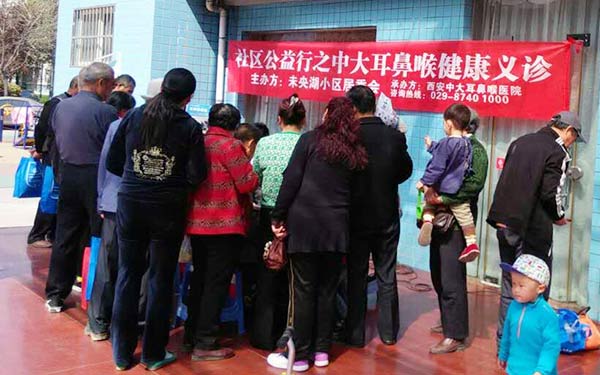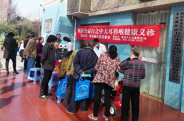 为进一步普及健康知识,帮助居民养成健康文明的生活方式,同时解决看病难的现状。3月31日上午,应西安市未央湖小区委员会邀请,西安中大耳鼻喉医院医护人员前往长庆未央湖花园社区开展“健康义诊进社区”服务活动,活动受到了社区居民的大力支持和热烈欢迎。