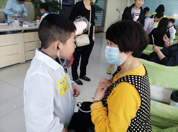 除了学习、游戏、感恩环节外,西安中大耳鼻喉医院更是贴心安排医生为小朋友们一一看诊,教小朋友测血压、进行视力检查、进行耳鼻喉常规检查,帮助小朋友们加强自我认识,排除疾病隐患。