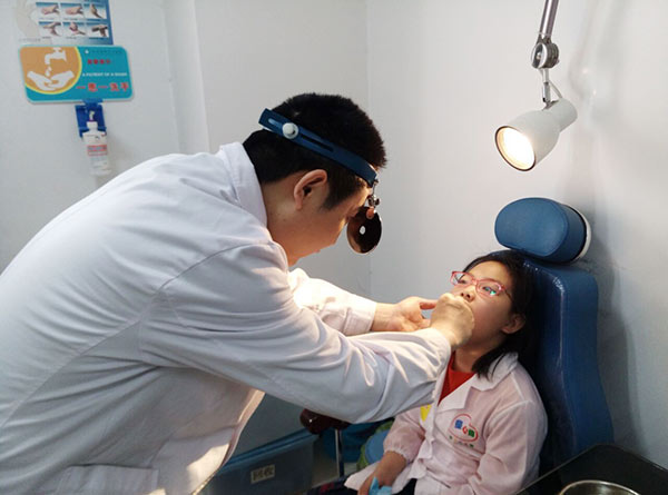 中大专家正在为小朋友做检查