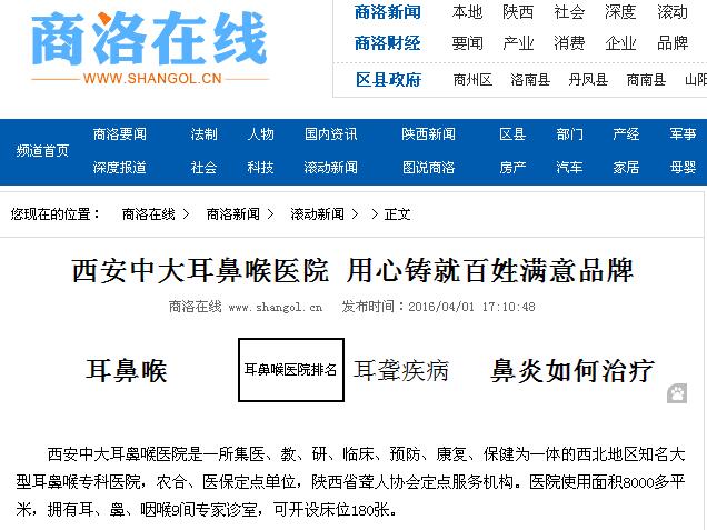 【商洛在线】西安中大耳鼻喉医院 用心铸就百姓满意品牌