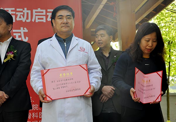 4月16日,由西安报业传媒集团主办,2016义诊进社区公益活动启动暨扶贫帮困捐赠仪式在水岸东方举行,西安晚报现场授予西安中大耳鼻喉医院2015年积极参与义诊公益活动“爱心使者”荣誉称号。