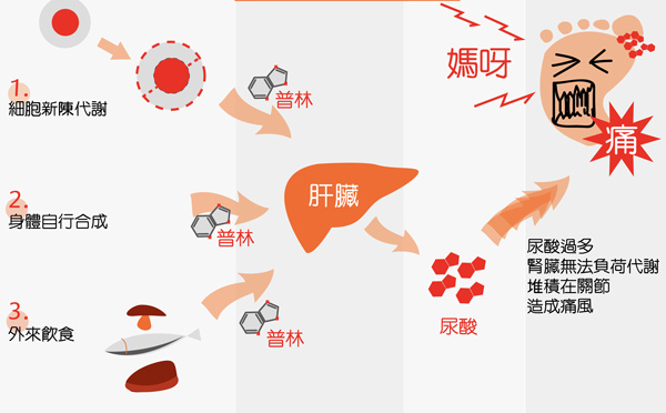 【痛风的定义】是由于体内、外各种原因导致人体内的尿酸升高,超出了人体可以承受的能力。平时吃的这些肉、鱼、虾、鸡鸭等等,尤其是啤酒、老火汤等到了身体里面,会转化成尿酸。